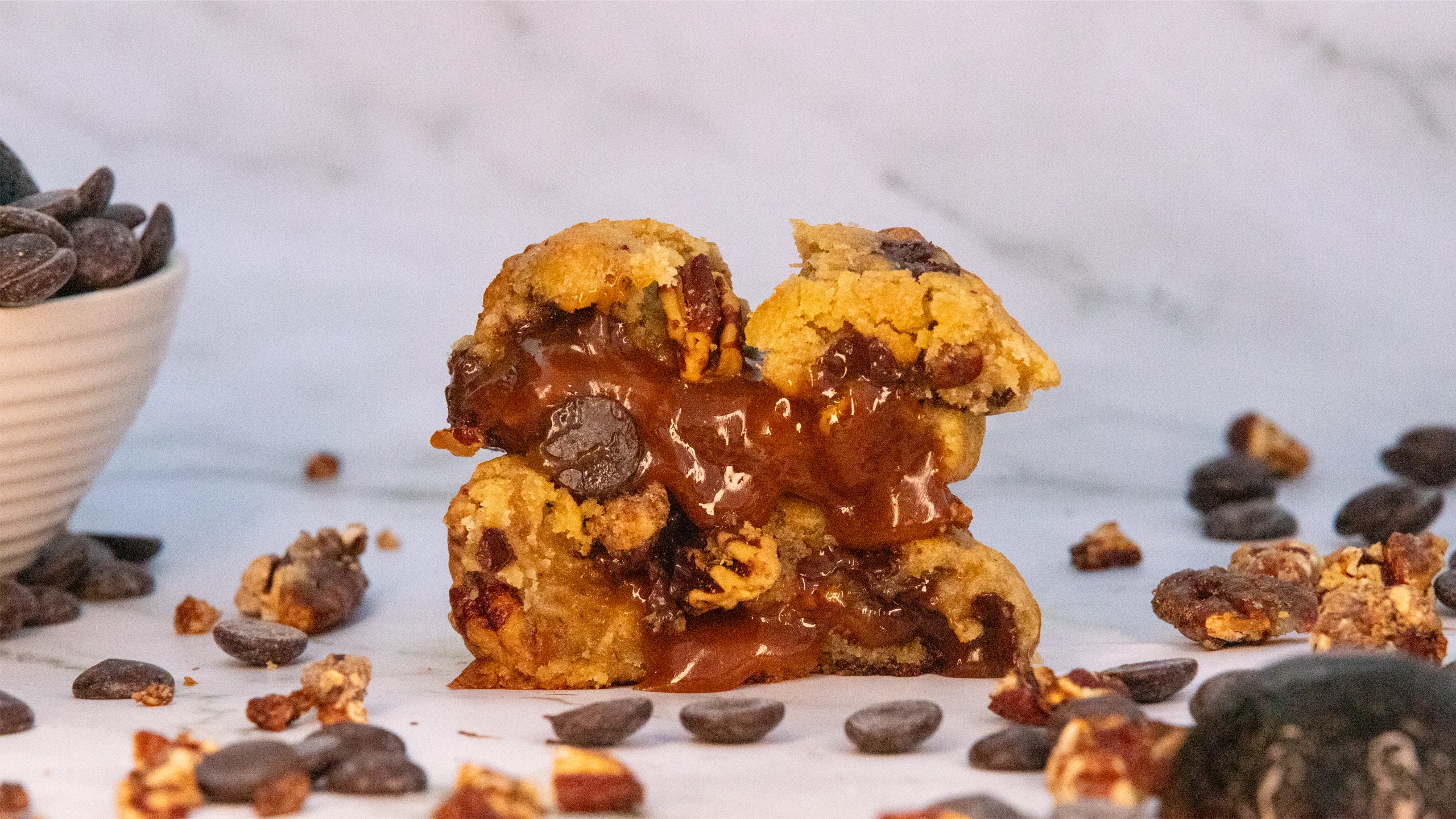 Dans nos cookies, le chocolat CALLEBAUT est toujours à l’honneur. Reconnu parmi les meilleurs au monde, il se distingue par une faible teneur en sucre et des arômes profonds qui rendent chaque bouchée irrésistible.